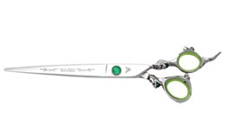 This attractive hair shear features a true ergonomic handle. The thumb ring bends down and the finger ring bends up. Greater comfort for a smaller hand. Impressive performance. Available with a matching thinner.